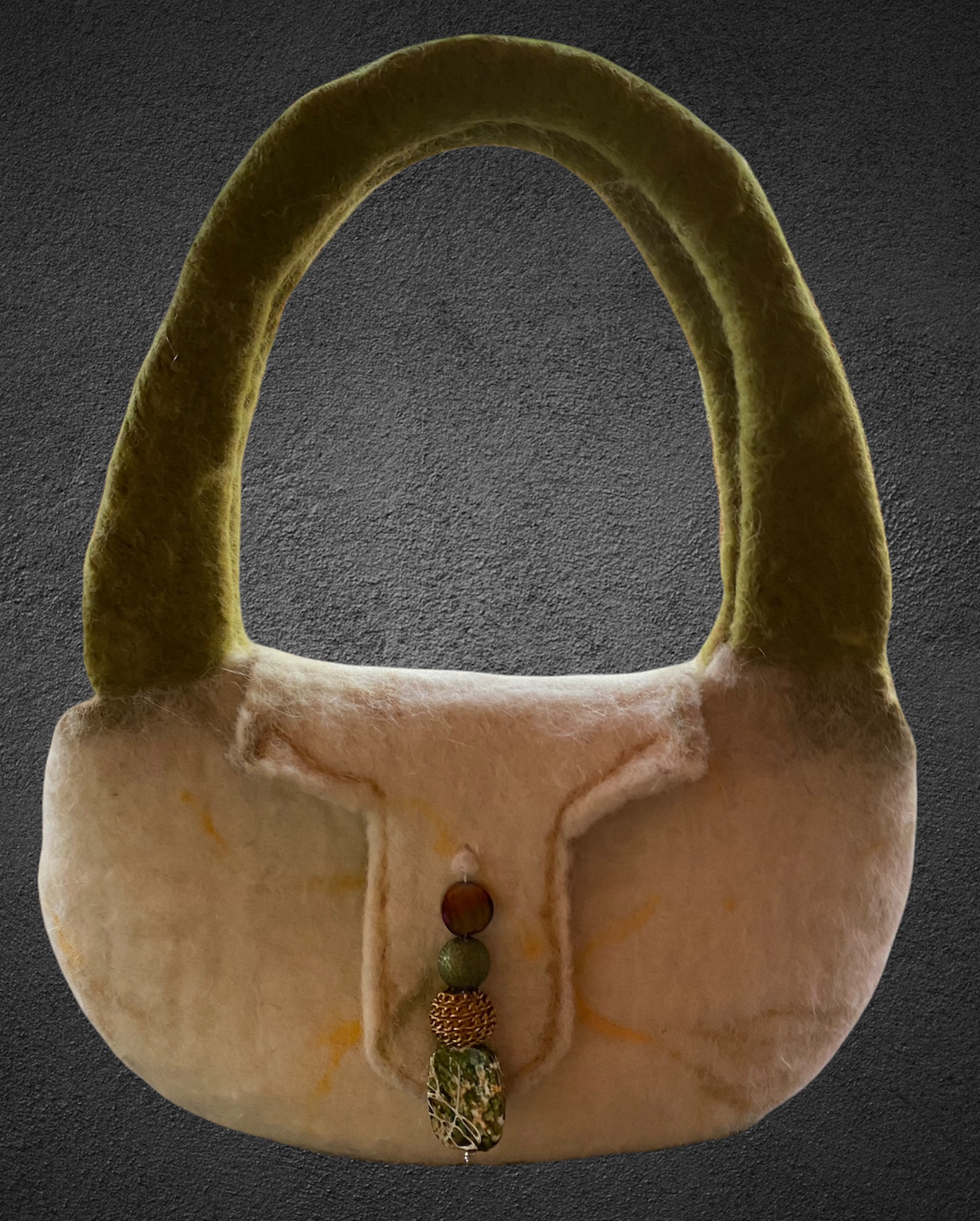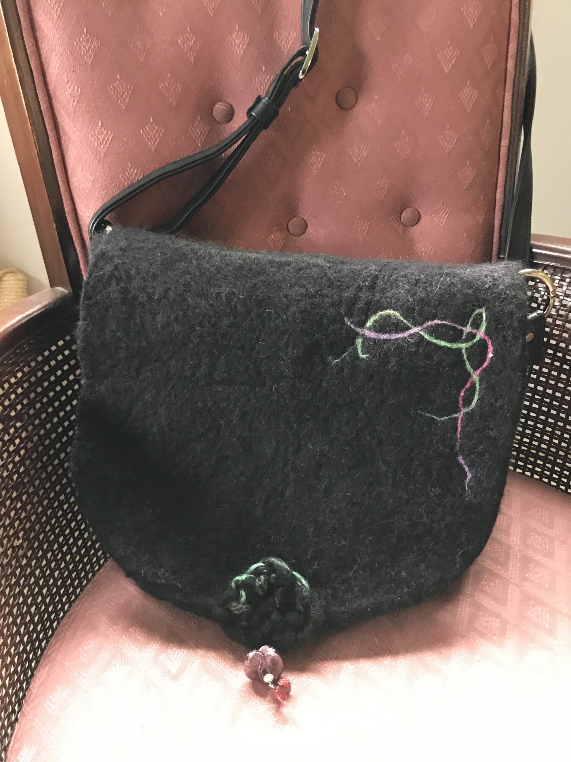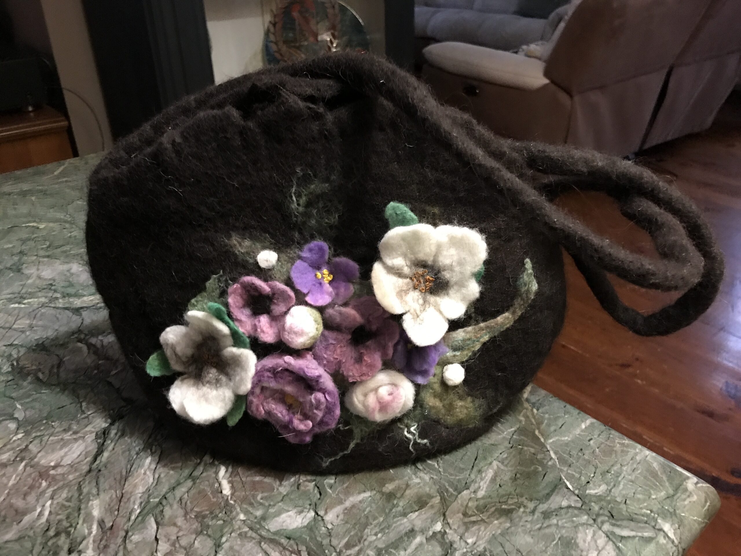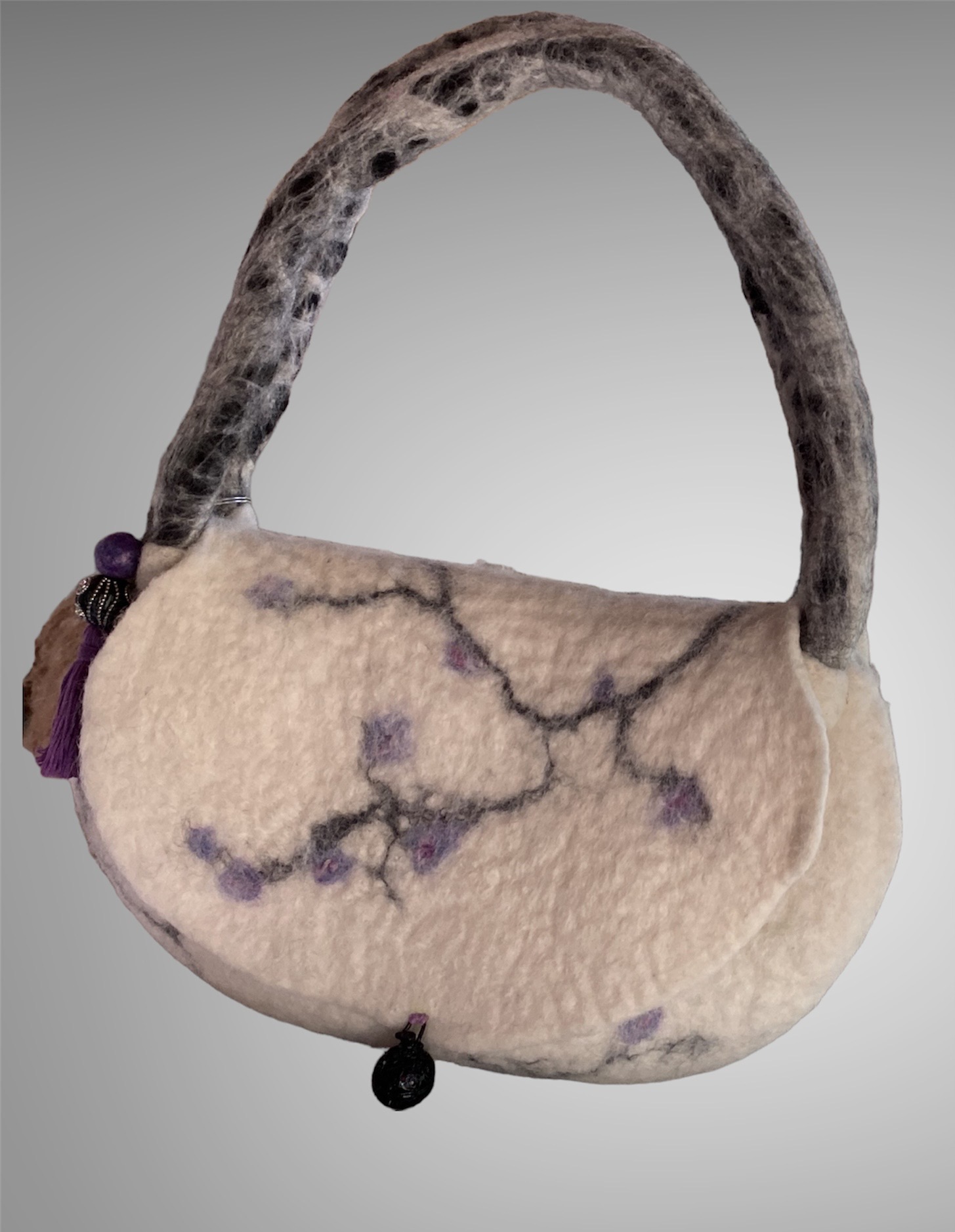 Here are a few handmade bags and accessories felted from natural alpaca and wool fibers. Some have individual needle felted designs accentuating them.